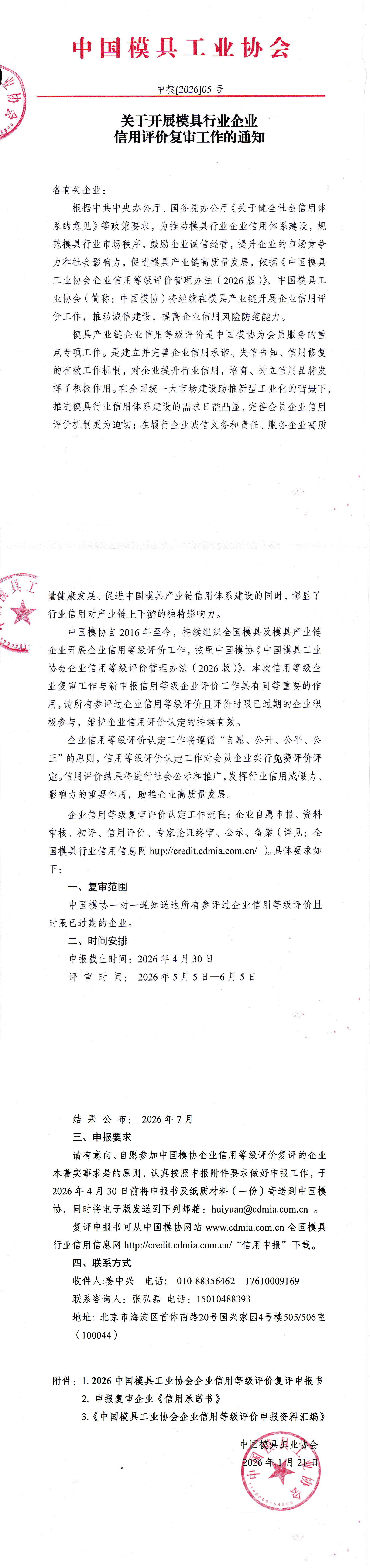 附件一:2026中国模具工业协会企业信用等级评价复评申报书.docx
